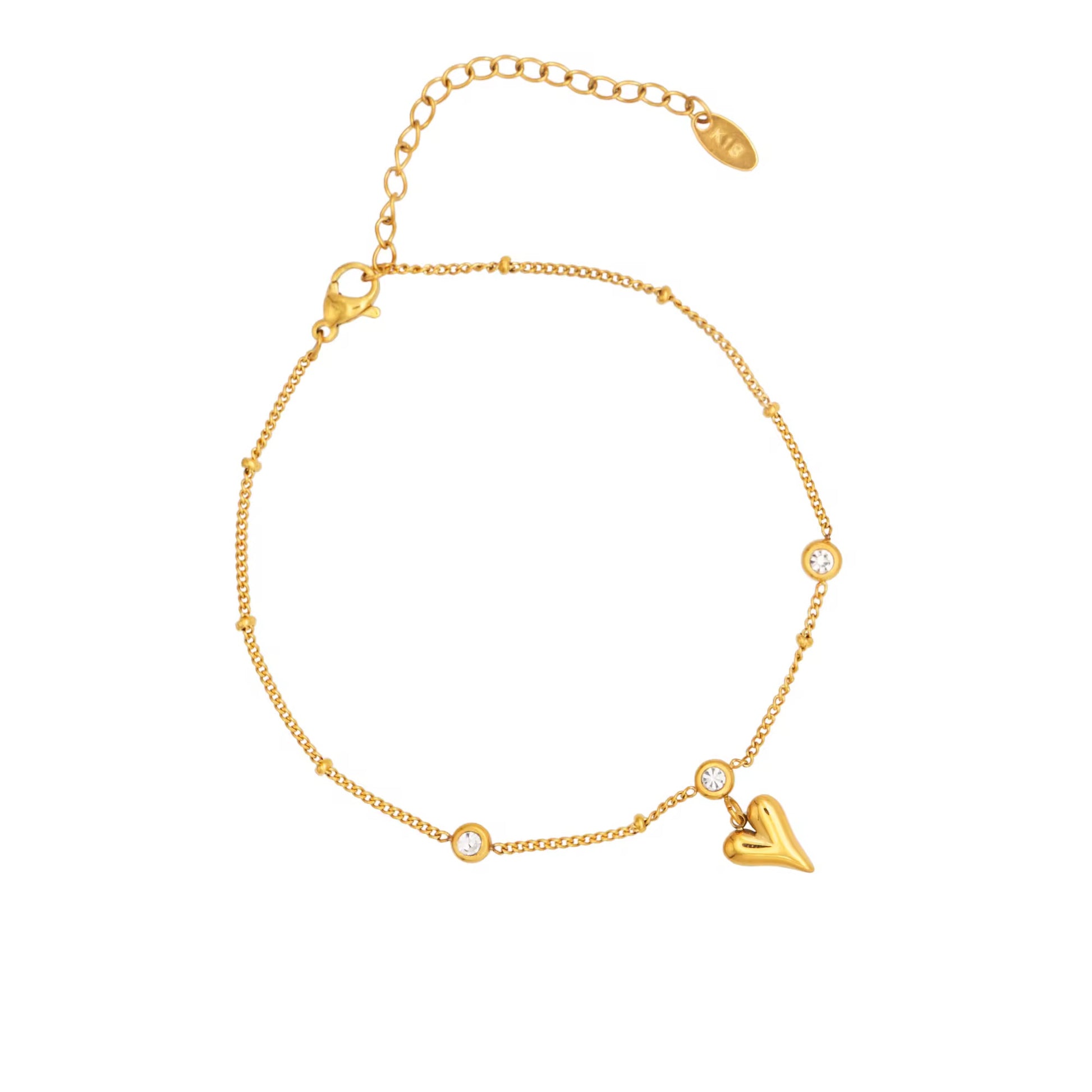 "An elegant anklet adorned with a delicate heart charm, symbolizing love and affection."
